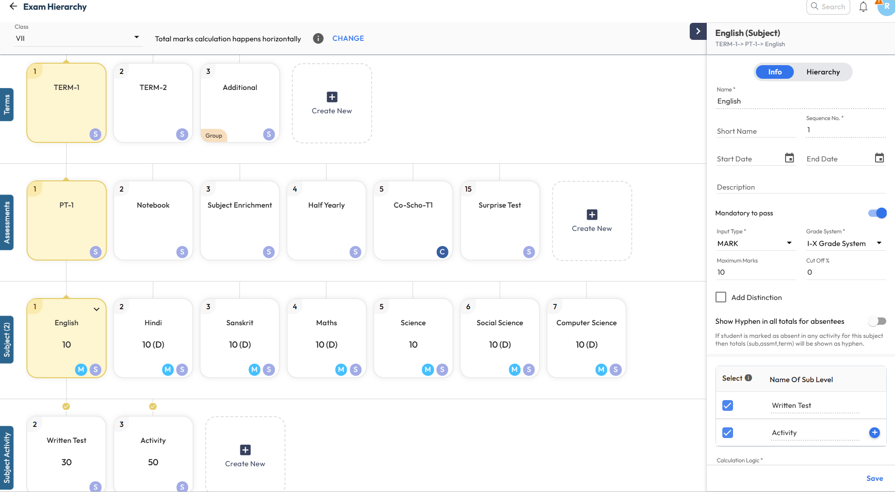 Path : Settings > Student > Examination > Exam Hierarchy New > Select Class to View